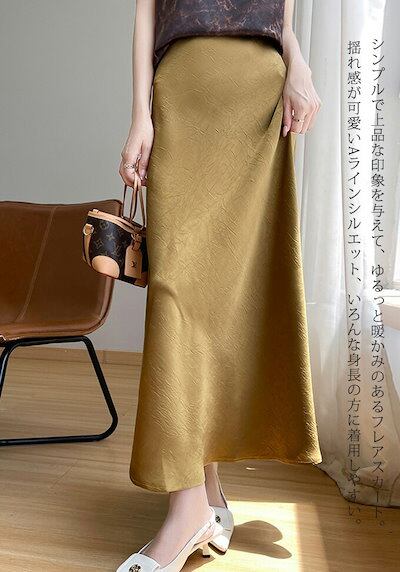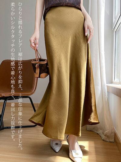 フレア スカート ロング マキシスカートレディース 膝下 ロングスカート ウエストゴム 体型カバー ハイウエスト フレアスカート ゆったり 高見え 光沢 高級感 薄手 コーデ 大人 Aラ