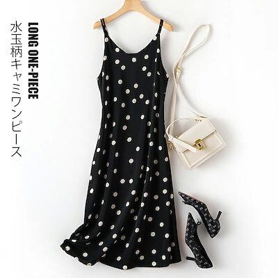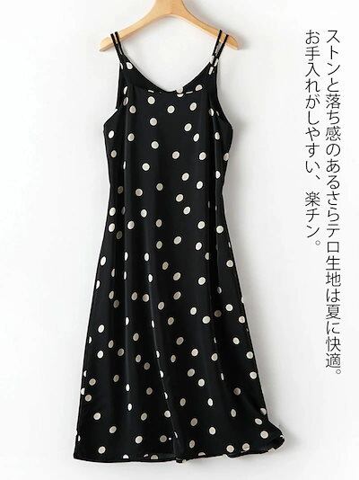 キャミソールワンピース 夏 レディース ワンピース Vネック ドット 柄 水玉 花柄 ロング キャミソール キャミワンピ ロング丈 ジャンパースカート ぺチワンピース インナー ゆったり 大きいサイズ