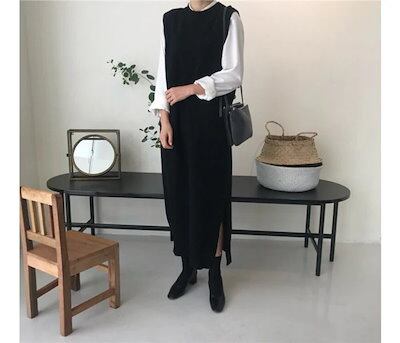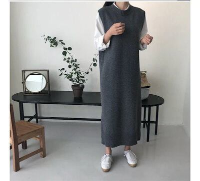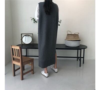 ニットワンピース ノースリーブ ベストワンピース ロングワンピース ジャンパースカート ロング丈 レディース ニット ワンピース オーバーオール ゆったり 無地 重ね着 秋 冬 体型カバー 着痩せ 3