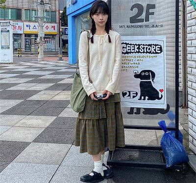 スカート レディース ウエストゴム ボトムス ロング丈 チェック柄 Aライン 切り替え ロンスカ 膝下 秋 冬 ファッション フレアスカート 可愛い 秋コーデ 冬コーデ 着痩せ オシャレ ゆったり カ
