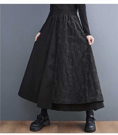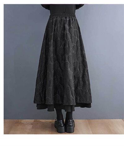 スカート ロング スカート レディース ボトムス ロング丈 ロングスカート 秋 冬 ウエストゴム 花柄 切り替え スカート 大きいサイズ 体型カバー ゆったり 着痩せ 通勤 OL ミモレ丈 30代 4