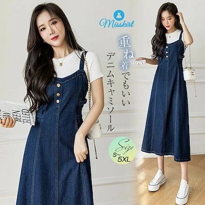 一部サロペット ワンピース デニム デニムワンピース ジャンパースカート レディース サロペットワンピ ロングワンピース キャミソール ワンピース ゆったり 体型カバー 春 夏 秋 冬 オールインワ