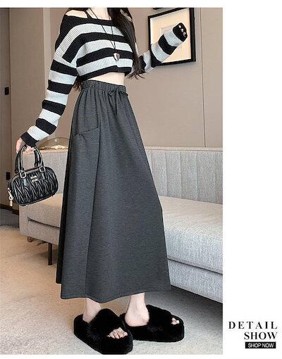 スカート ロング レディース ウエストゴム ボトムス ロングスカート Aライン フレアスカート 裏起毛 カジュアル 着痩せ ファッション ゆったり スリット きれいめ やわらかい 体型カバー シンプル