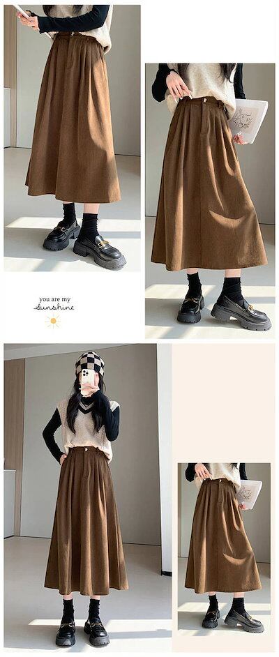 コーデュロイスカート 秋冬コーデ レディース ボトムス ロングスカート フレアスカート 体型カバー ミモレスカート ロンスカ お洒落 ロング丈 マキシ丈 膝下 ひざ下 コーデュロイ ゆったり 体型カバ