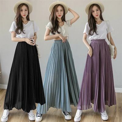 ワイドパンツ パンツ レディース シフォン シフォンスカート レデイース ロング丈 プリーツ プリーツスカート 春 夏 リラックス カジュアル ウエストゴム ゆったり 柔らかい 伸縮性 キュロットス