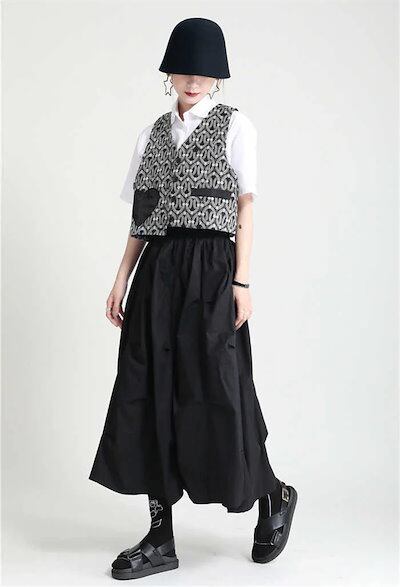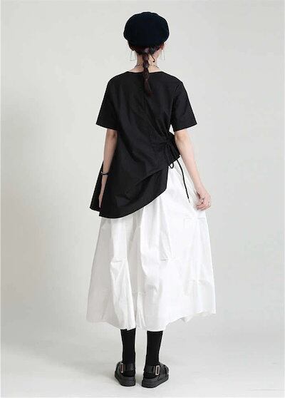 スカート ボリュームデザインスカート レディース スカート ミモレ ボトムス フレア ロングスカート 変形 ミモレ丈 ハイウエスト Aライン お洒落 無地 ゆったり カジュアル 大人可愛い ブラック