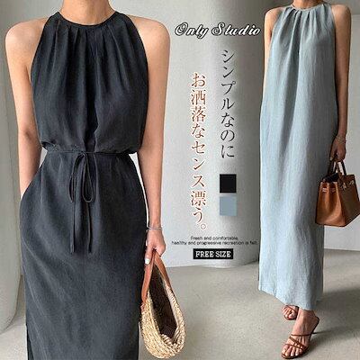 ワンピース レディース ノースリーブ ロング ワンピース ロング ワンピ 体型カバー ゆったり シンプル ロングワンピ ホルターネック 無地 かわいい 春 夏 夏服 楽ちん おしゃれ 大きいサイズ カ