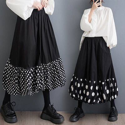 バルーンスカート ロング レディース コクーンスカート ゆったり コクーン バルーン スカート ロングスカート ドット柄 aライン ロング ボトムス ゆる 体型カバー 総ゴム 美脚 通勤