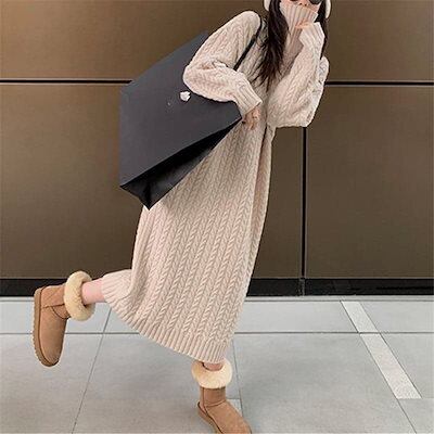 ワンピース ツイスト ハイネック インナー ロングスカート レディース 秋冬新作 ゆったり ボトムス ニットワンピース 韓国ファッション