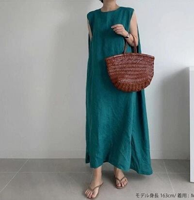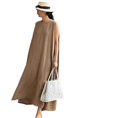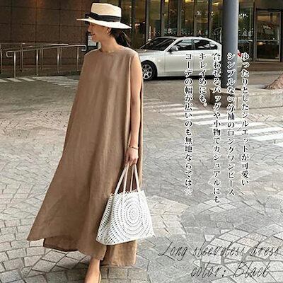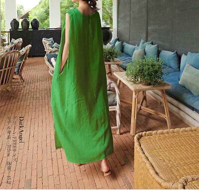 大人気!無地綿麻ワンピース【5カラー】Tシャツワンピース半袖マキシ丈 ロングワンピトラップブルー着?せロングスカート気質レディーススカートゆったりUVカット 大きいサイズドレス通勤結婚式卒業式シンプル