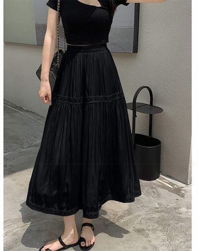 スカート ロング 夏 きれいめ ゴム 春 レース フレアスカート ボトムス レディース リゾート フレア 膝下丈 マキシ丈 薄手 大人 楽ちん ゆったり カジュアル リラックス 30代 40代