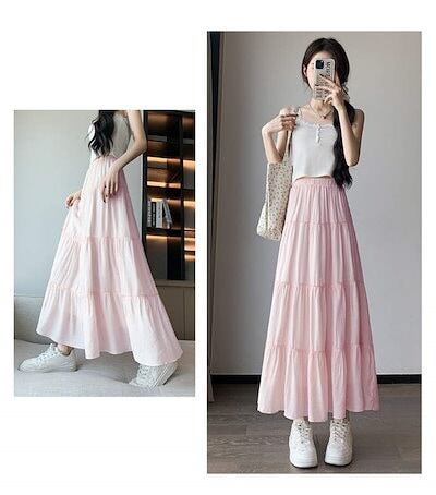 スカート ロング 夏 きれいめ ティアードスカート ゴム 春 ボトムス レディース リゾート フレア 膝下丈 薄手 大人 楽ちん ゆったり カジュアル お洒落 リラックス 40代 50代 60