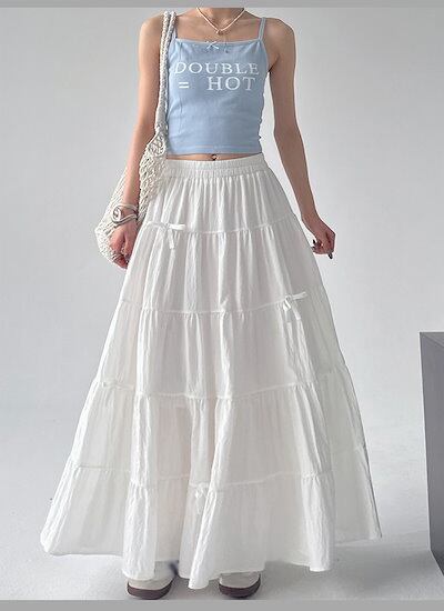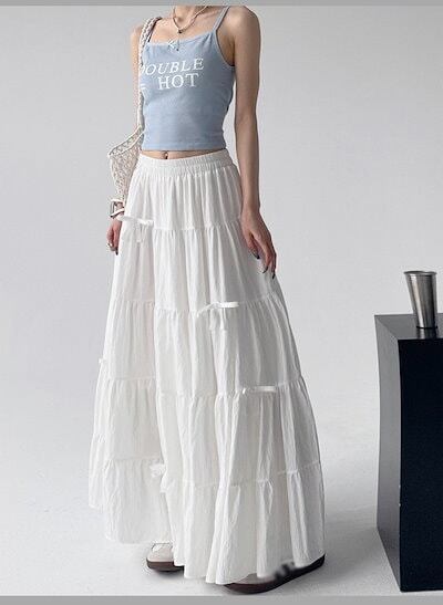 マキシ丈スカート Aライン 大人 カジュアル 春夏 リボン きれいめ レディース 涼しい ゆったり ゴムウエスト リゾート ロングスカート 海 サマー ビーチ 20代 30代 40