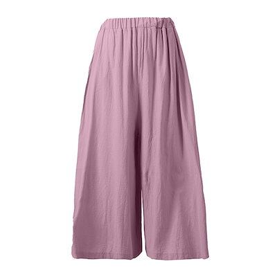 麻綿パンツスカートルーズ長め夏レディースワイドカジュアルポケットパンツ女性用2025無地
