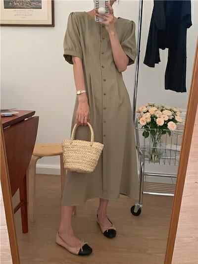 ワンピース カジュアル ロング マキシ丈ワンピ 韓国 ファッション レディース 春 夏 カジュアル お取り寄せ PTXN707 オルチャン コーデ シンプル 定番 セレカジ 20代 30代 40代 2