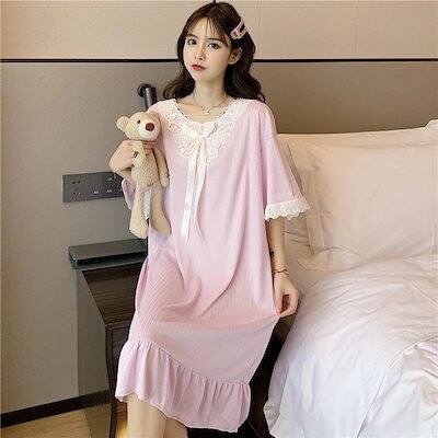 響かない!シームレスレディースパジャマ2024新作夏Tシャツ 韓国ファッションパジャマネグリジェサロペットスカートデザイン感快適透気ロングオールマッチ