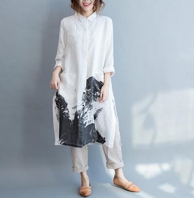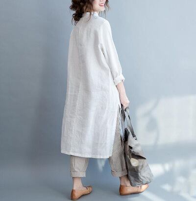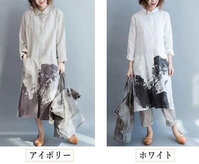 シャツワンピ ロングシャツ ワンピース 春 夏 リネン シャツ 羽織り チュニック レディース 綿 麻トップス ロングシャツ 長袖 大きいサイズ スリット