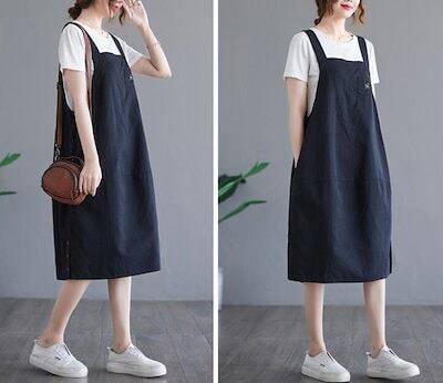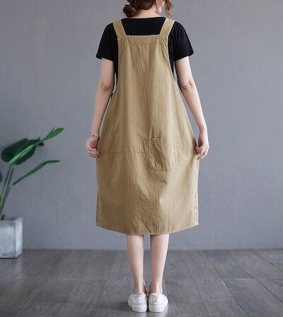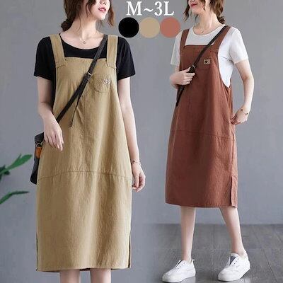 サロペットスカート ジャンパースカー オールインワン 綿麻 ワンピース 重ね着 無地 ロング丈 マタニティー 体型カバー ロング レディース 大きいサイズ 大人 春 夏 M L 2L