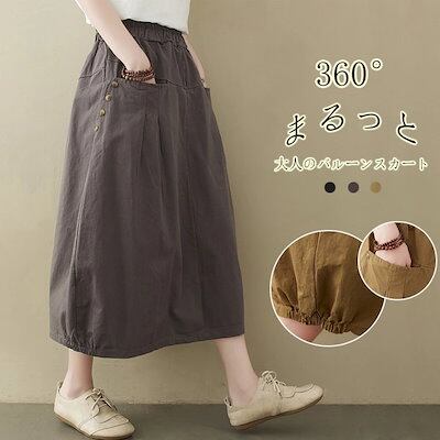 2024新品発売コクーンスカート レディース 春 大人 バルーンスカート ロング スカート コクーン 丸いシルエット 可愛い ロングスカート 春夏 ハイウェスト 総ゴム ポケット ミモレ丈スカート ゆ