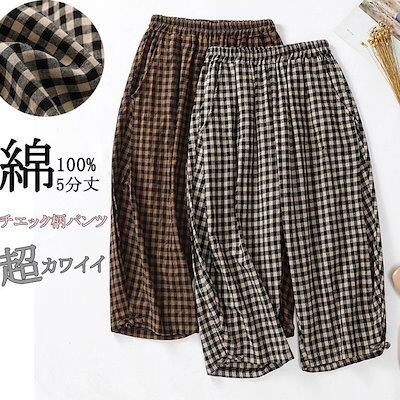 2024新品発売ハーフパンツ レディース チエック柄 夏 5分丈 パンツ ポケット 春夏 おしゃれ ハーフ 膝丈 体型カバー ウェストゴム きれいめ コットン 綿 カジュアル ショートパンツ
