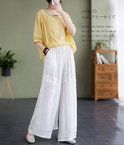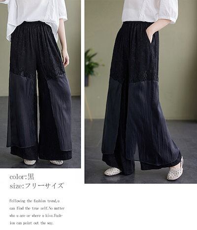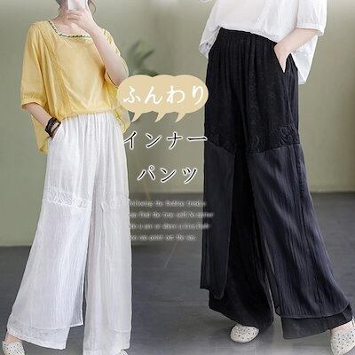 2024新品発売ペチパンツ ロング ペチコート ワイド パンツ 裾 レース きれいめ ガウチョパンツ 夏 レディース 黒 重ね着 インナーパンツ ふんわり 涼しい ワイドパンツ ハイウェスト シワ加工