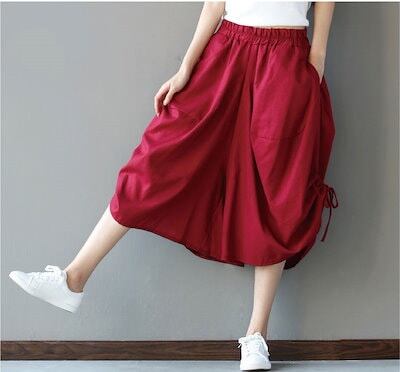 2024新品発売綿麻 美脚 ガウチョ パンツ きれいめ 7分丈 ワイドパンツ ガウチョパンツ 春 スカンツ スカーチョ レディス ハーフパンツ ビッグシルエット 裾デザイン 春 夏 秋 パン