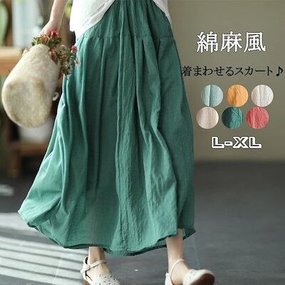 2024新品発売綿麻 スカート レディース 春夏 ロングスカート ウェストゴム フレアスカート Aライン マキシスカート 大きいサイズ 体型カバー オシャレ ボトムス 着痩せ 高見え コーデ 通気性良