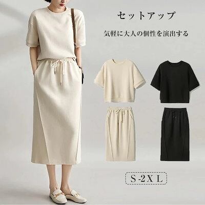 セットアップ スカート レディース カジュアル 夏 スカートセットアップ 春 夏 上下セット マキシ丈 ミモレ丈 スカート ウエストゴム 半袖シャツ ブラウス 着?せ 通勤 OL 日常 体型カバー