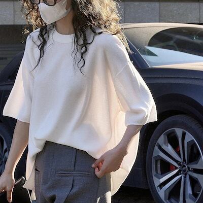 2枚購入で 2oo円FF!25 Tシャツ カットソー レディース リラクシー 無地 トップス 半袖 半そで ック ショート丈 大きいサイズ ゆったり ブラック ホワイト グリーン ピンク