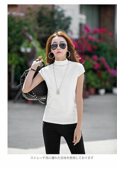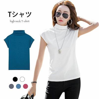 【急速出荷】カットソー レディース ハイネック Tシャツ 半袖 タータオルネック 薄手 無地 ストレッチ 伸縮性 ハイネックTシャツ 半袖Tシャツ トップス プルオーバー お洒落 カジュアル 大人 こ