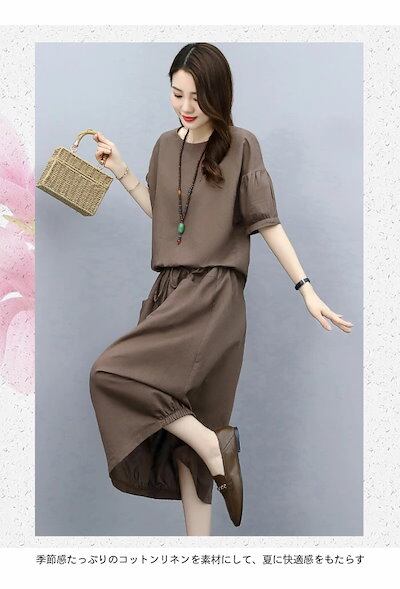 【急速出荷】ブラウス コクーンスカート 上下セット 2点 レディース Tシャツ 夏 半袖ブラウス ゆったり ロングスカート つぼみスカート 体型カバー おしゃれ レトロ セットアップ オフィス