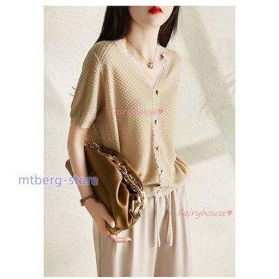 【Kizoo】Tシャツ レディース 春夏新作 40代 半袖トップス 無地vネックTシャツ レションニットカーディガン ショット丈Tシャツ ゆったり 薄手 おしゃれ 大人 50代 30代