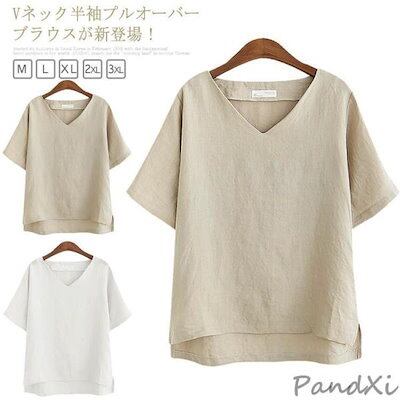 今月の新着 迅速な配送 Vネック トップス リネン トップス 綿麻 Tシャツ ブラウス 半袖 チュニック レディース ナチュラル ゆったり 着痩せ 可愛い