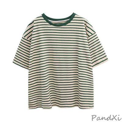 今月の新着 迅速な配送 トップス レディース Tシャツ カットソー 半袖 無地 ボーダー 綿 コットン オーバーサイズ 夏 ゆるTシャツ クルーネック 体型カバー 五分袖 ミ