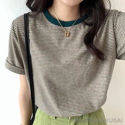 2枚購入で200円OFF Tシャツ 半袖 レディース カットソー ゆったり ストライプ 薄手 カジュアル おしゃれ ス 涼しい シンプル 無地 着まわし 通勤 通学 夏