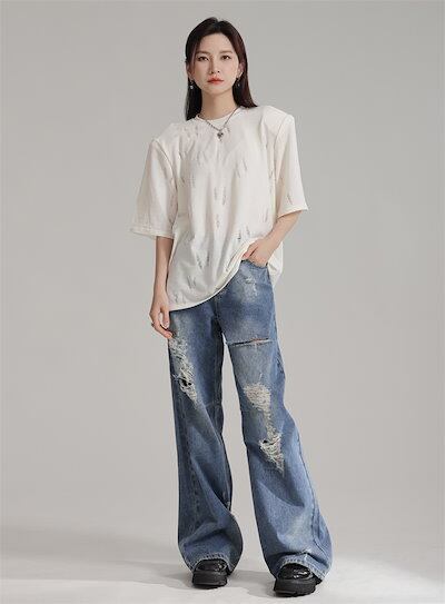 2024/夏/ホール/ブレイク/トップス/無地/ラウンドネック/半袖/Tシャツ/レディース関連商品は店で購入可能