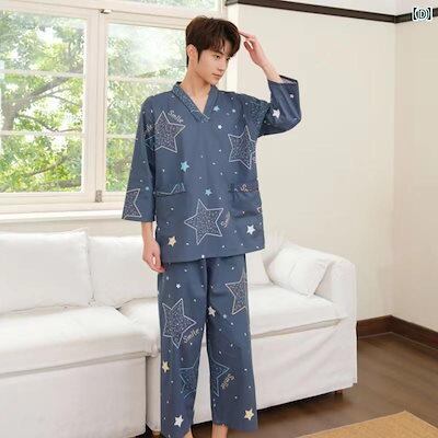サウナ服 パジャマ ルームウェア 長袖 長ズボン マッサージ メンズ レディース コットン 入浴 大きいサイズ 星 パープル ブルー ホワイト