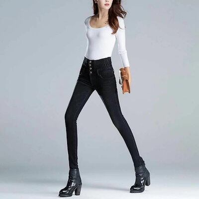 デニムパンツ ストレッチパンツ レディース スキニー ハイウェスト ボトムス 4連ボタン 着痩せ 体型カバー ジーンズ タイト ロングパンツ 長ズボン レギンスパンツ ペンシルパンツ スキニージーンズ