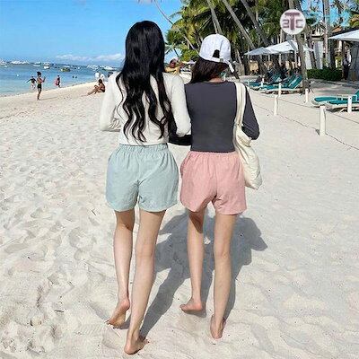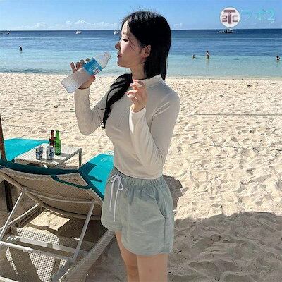 水着上下2点セット みずぎ ビキニ レディース スイミングウエア びきに ミズギ 長袖ラッシュガード ショットズボン 短パンツ オフショル ショットパンツ UVケア