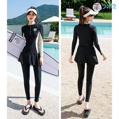 ガールズビキニ 女性水着上下4点セット ビキニ レディース 長袖ラッシュガード スポーツブラ 長レギンス ミニスカートフレアスカート 長ズボン みずぎ ミズギ び
