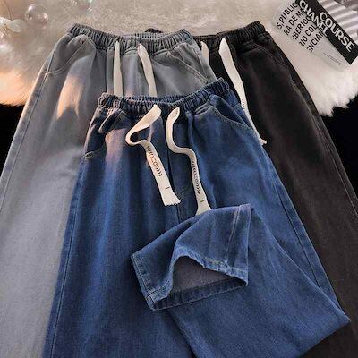 コーデ メンズ 用 シンプル ファッション オシャレ かっこいい 大きいサイズ ストリート 紳士 レトロ ストレート ワイド レッグ ストレッチ ウエストドローストリング ジーンズ レディース ユニセ