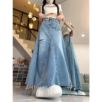 デニムスカート レディース Aラインスカート ロングスカート マキシスカート 体型カバー 着痩せ スカート 韓国ファッション レアスカート