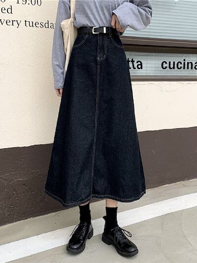 ロングスカート デニムスカート レディース マキシスカート Aラインスカート 体型カバー 着痩せ スカート レアスカート 韓国ファッション
