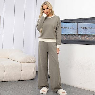 【高.品.質】 ニット セットアップ レディース 二点セットアウター 上下セット ロングパンツ 韓国ファッション トップス パンツ 高級感 ワイドパンツ 体型カバー 着痩せ