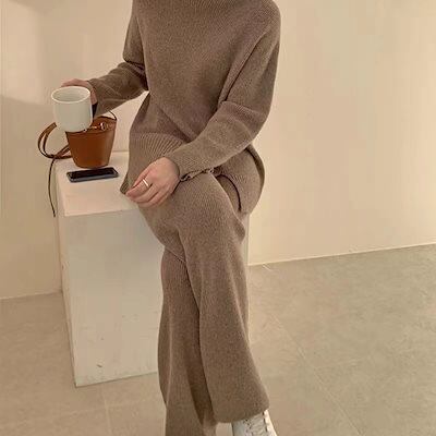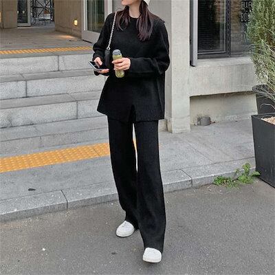 秋冬 新作 ニット 二点セット おしゃれ 気質 アウター レディースセットアップ 上下セット セーター ワイドパンツ セットアップ 通勤 シンプル 福袋