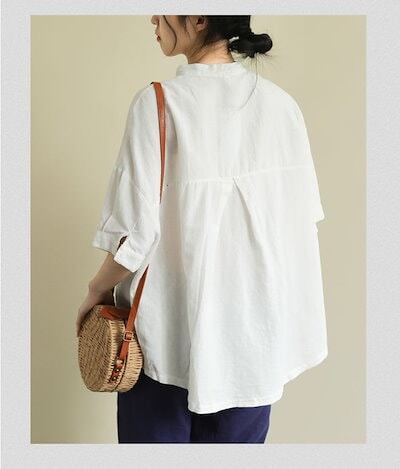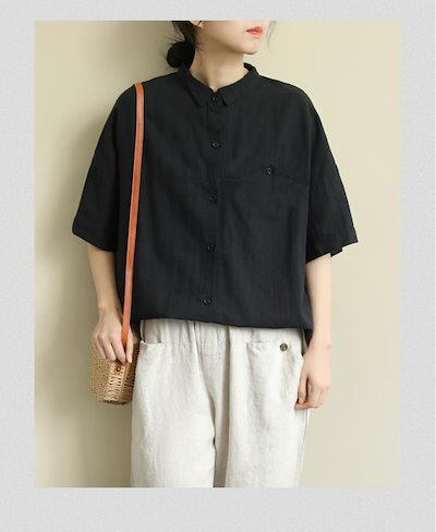 コットンリネンシャツ半袖カーディガントップ快適で通気性 M-3XLクルーネックトップス体型カバーチュニックブラウス