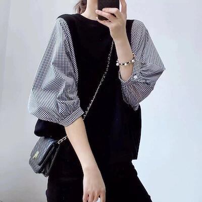 ストライプシャツサマーニットコットンのステッチ春と夏の新しいデザインのルーズTシャツサテンシャツクルーネックトップス