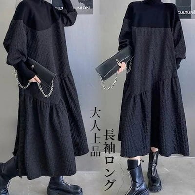 初秋 冬 ワンピース 日韓ファッション 揺れるトレンド ワンピース 秋 ロングワンピース体型カバー 着痩せ 長袖 ハイネック Aラインワンピ シンプル 上品 大人 通勤 OL気質母の日