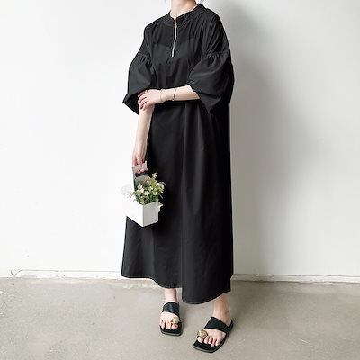 新作 秋 冬のワンピース シンプル ランタン袖 ワンピース 気質高級感 カジュアル ロングワンピース 着痩せ 大きいサイズ ワンピース