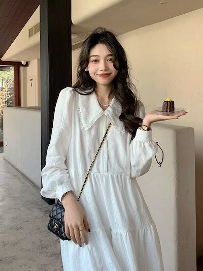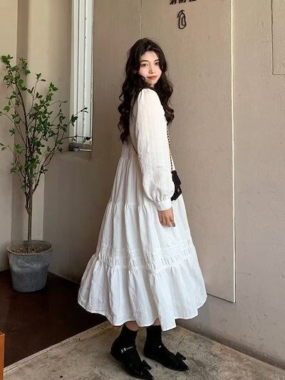 ホワイトワンピース レディース 2024 秋 冬 新作 ロングワンピース 可愛いワンピース